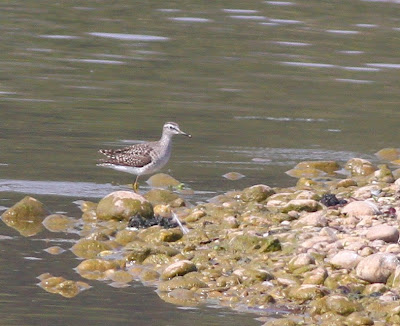 When I was about to enter the second hour of waiting for a Grasshopper Warbler to show (it had been reeling very close to the bench on the corner of the path for ages) and getting fed up I received a text from Nic Barlow at Marsh Lane "Wood Sandpiper on CP pool". As Brandon was filling up with noisy energetic children I decided to go for it especially as it would be a good Warks Year tick.